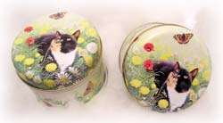 ashes for a small to medium companion pet. Royal Tall tin at the back